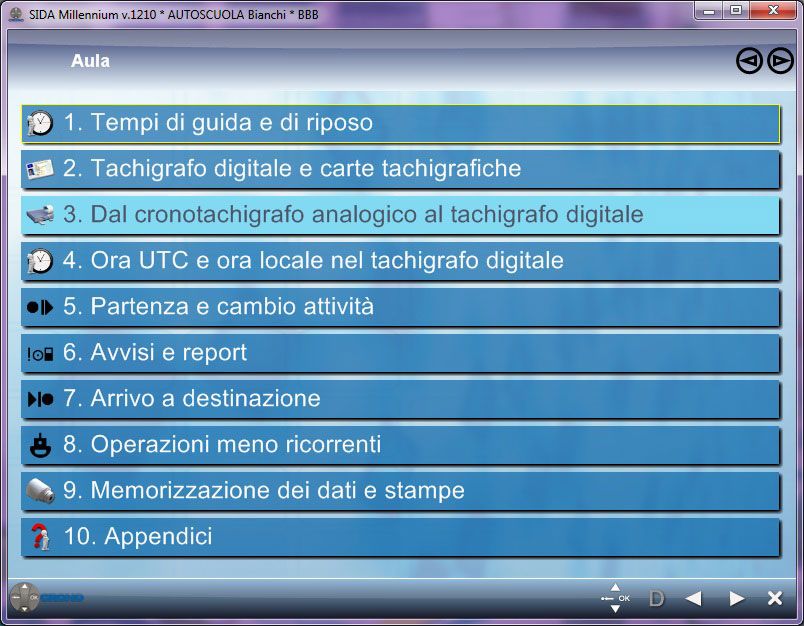 La sezione Aula spiega passo passo tutte le funzioni del cronotachigrafo digitale.