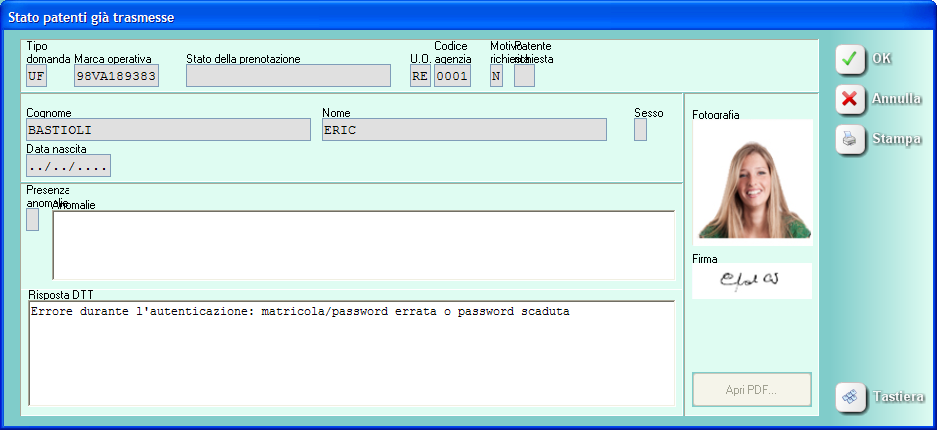 Attenzione: Non va utilizzata la funzione "copia per fastwork" presente nella Gestione di SIDA perchè ritaglia e ricampiona le foto e le firme in un formato non valido per il nuovo Prenota Patente.