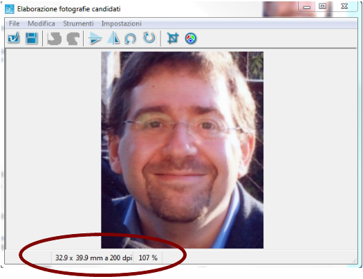 Nello stumento di elaborazione delle foto dei candidati, per ogni foto inserita in Tutto Prenota è riporatata la dimensione, conforme a quella richiesta dal DTT.