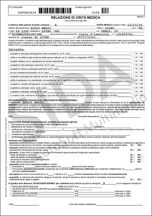 Il modulo è consultabile dal menu Stampe - Allegato 1 - Relazione di visita medica.