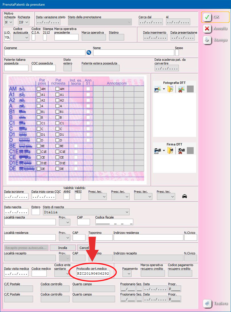 Protocollo certificato medico in prenota patente