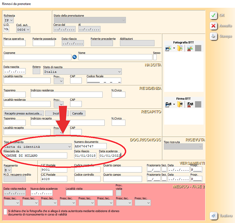 Dati documento di riconoscimento prenota rinnovo