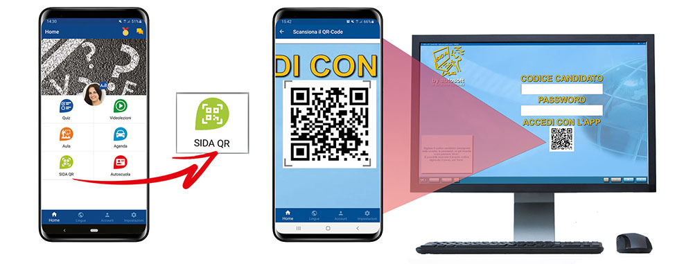 In questo modo, quando il candidato dovrà utilizzare SIDA Quiz gli basterà accedere all'app SIDA QuizApp e, utilizzando l'opzione "SIDA QR", scansionare il QR Code.