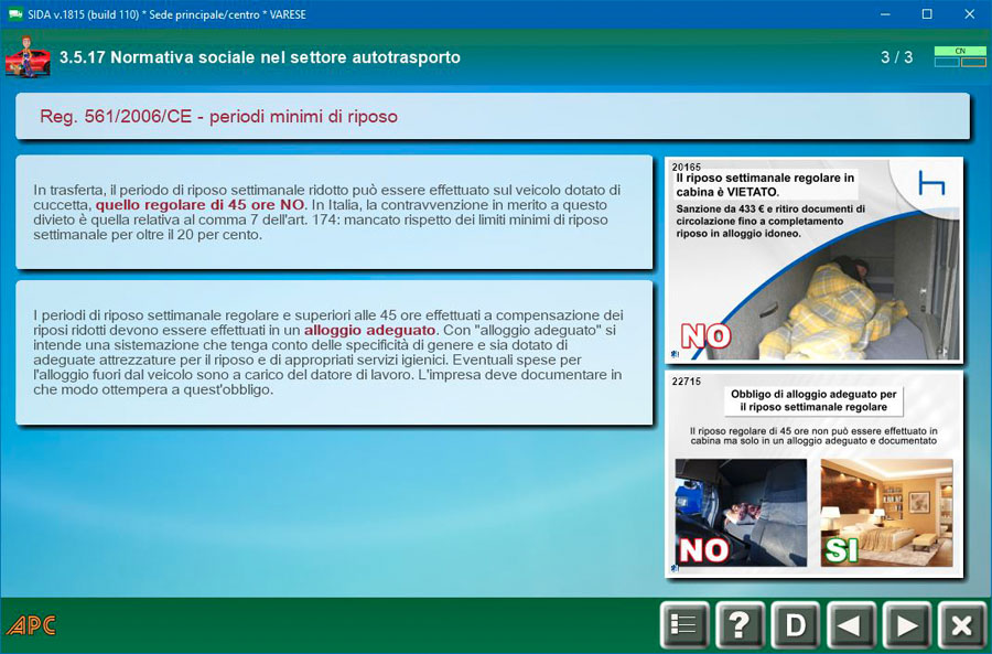 • 3.5.17 Reg. 561/2006/CE - periodi minimi di riposo: vietato riposo ridotto settimanale in cabina, obbligo di alloggio adeguato