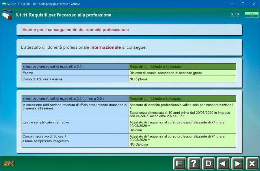 • 8.6.8 Corsi di formazione periodica: aggiornati termini per frequentare corso di formazione periodica e esami di ripristino CQC in caso di scadenza CQC da oltre 3 anni.