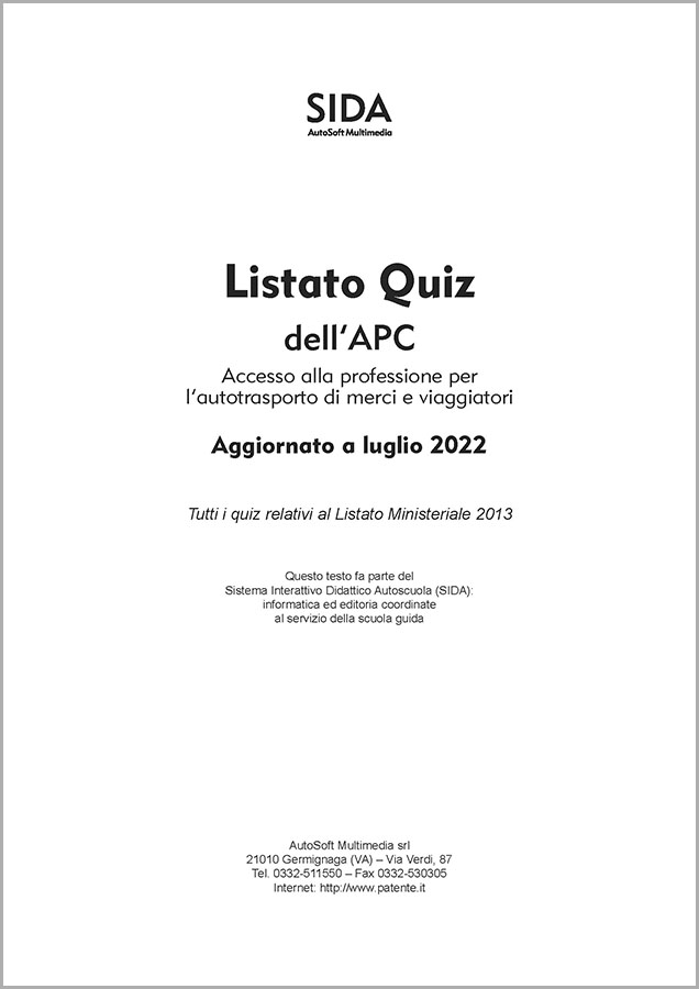 I clienti SIDA possono consultare dall'area personale del sito www.patente.il il libro listato APC che riporta la versione attuale del listato (Menu Materiale professionale --> Listati --> Listato APC).