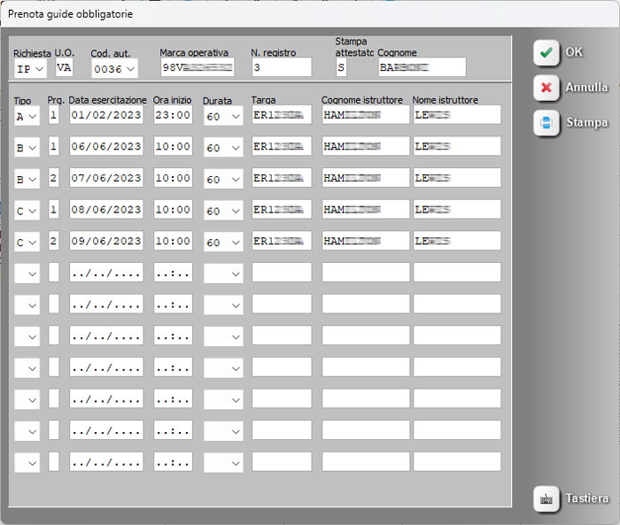 - Corretto bug che, nelle pratiche di riporto teoria, mostrava la marca operativa sbagliata nella barra arancione a sinistra sotto la fotografia (nell'anagrafica del candidato veniva mostrata corretta).