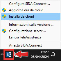 1. Cliccare sull'icona SIDA Connect SC col tasto destro del mouse e selezionare la voce "Installa da cloud".