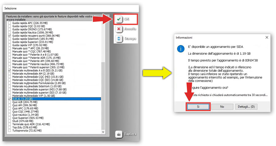 2. Verrà aperta una finestra con selezionate le voci nuove da installare (comprese nella vostra licenza); premere su "OK" e successivamente su "Si".