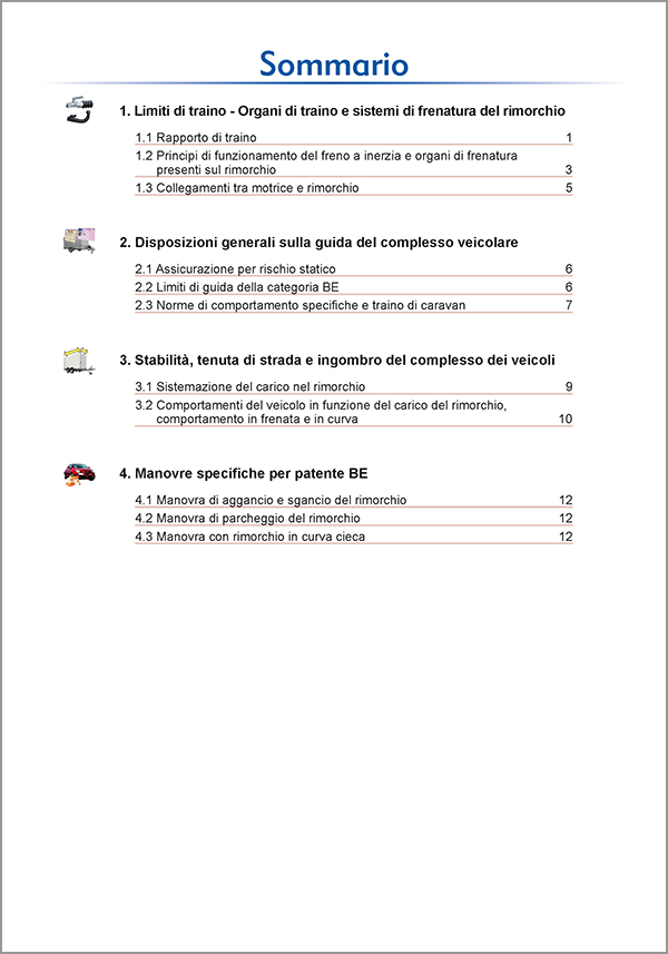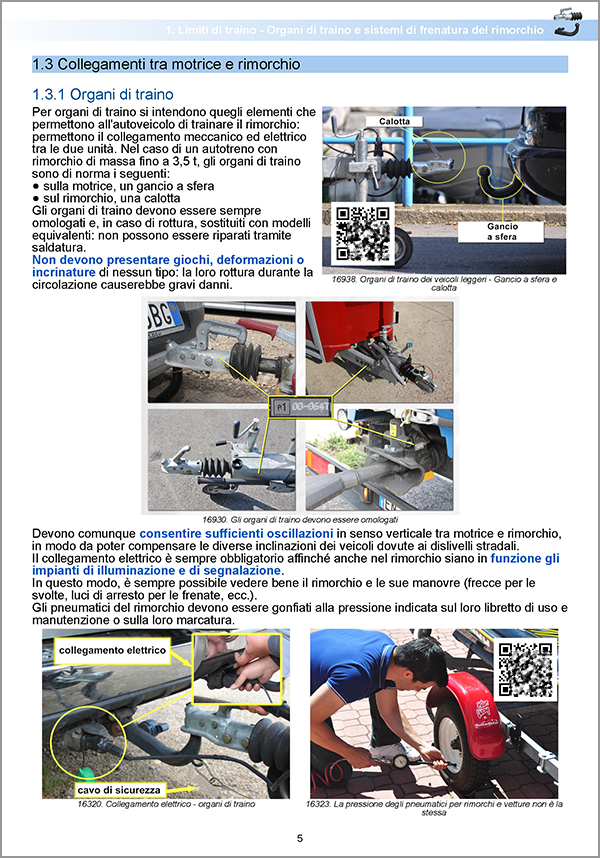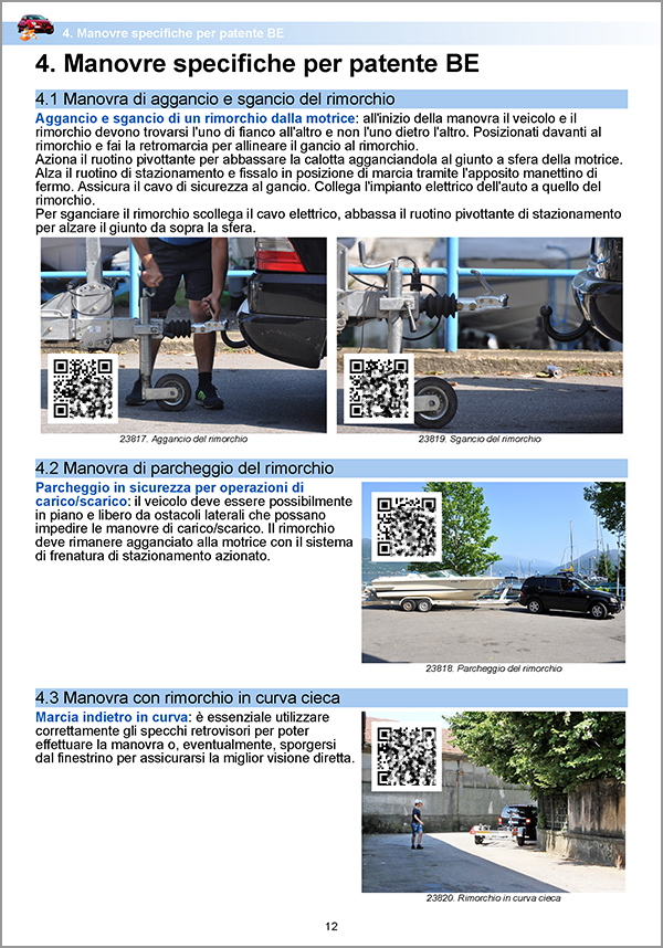 Contiene una sezione aggiuntiva che spiega le manovre specifiche per la patente BE, da effettuarsi con rimorchio in sede di prova pratica. Questa sezione è arricchita da codici QR per visualizzare i filmati che mostrano l'esecuzione delle manovre.