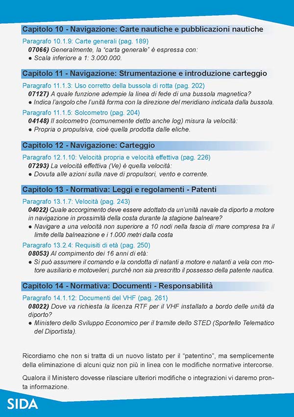 • Patenti nautiche A  e C (Listato Base e Vela) - alcuni quiz sono stati depennati