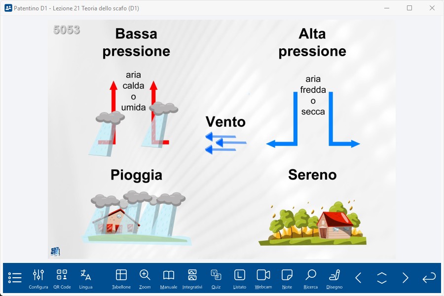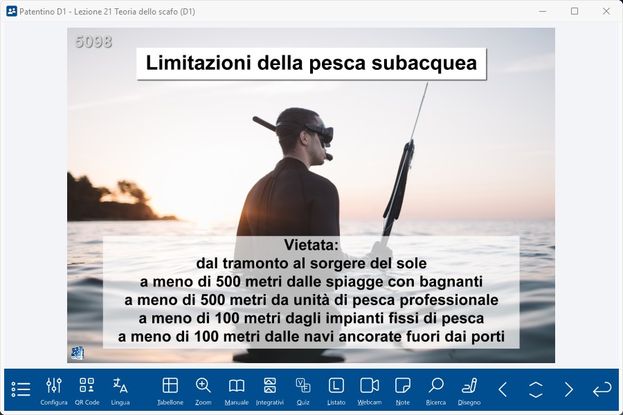 Le lezioni riflettono la suddivisione ministeriale in quanto i contenuti sono quelli ministeriali specifici per la patente nautica D1.
