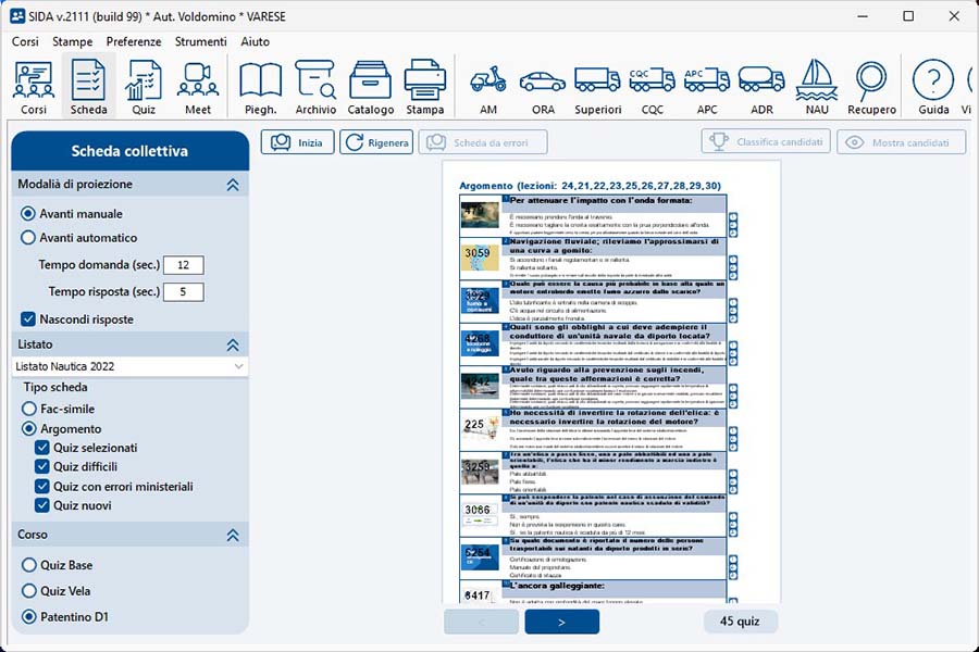 • Database di 792 domande (autonomo e diverso rispetto al listato nautica base)