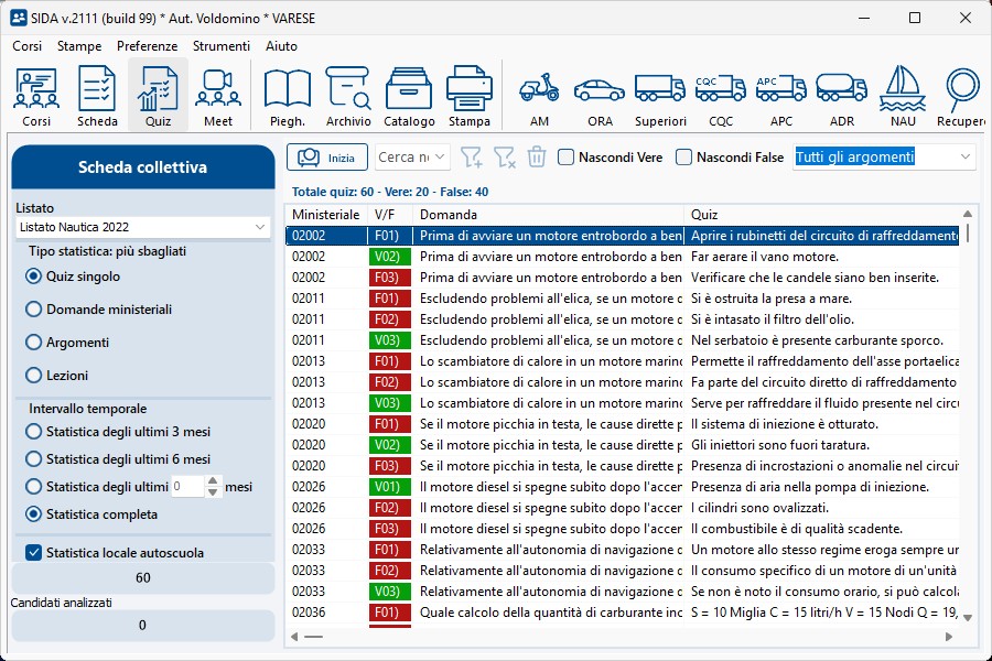 In SIDA Gestione è possibile iscrivere i candidati al corso "patente nautica D1". In questo modo i candidati si potranno esercitare, con codice, in autoscuola. Inoltre, come accade per tutti gli altri corsi SIDA,  le esercitazioni fatte con SIDA QuizApp confluiranno direttamente in gestione.