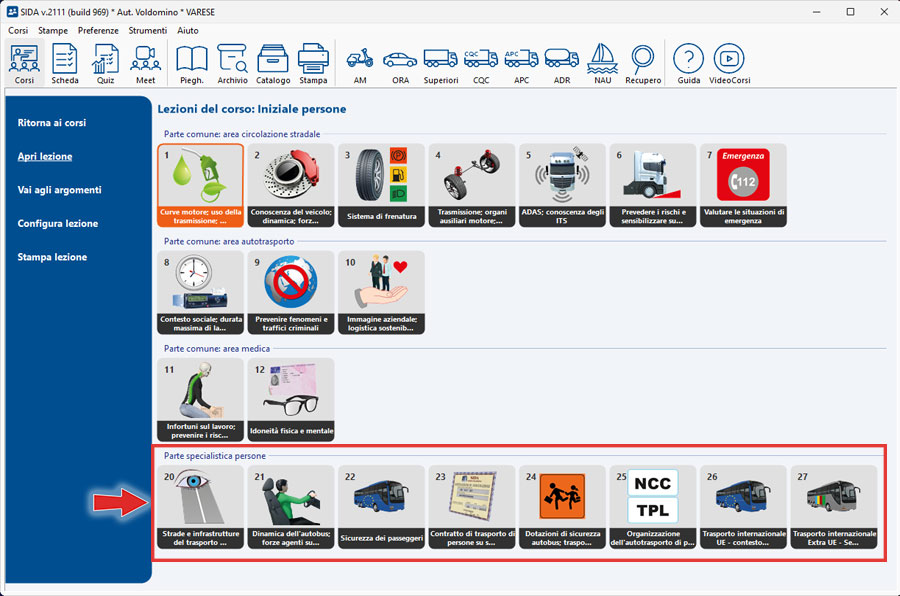 In particolare, troverà le nuove videolezioni del corso CQC Iniziale - parte specialistica persone (videolezioni dalla lezione n. 20 alla lezione n. 27).