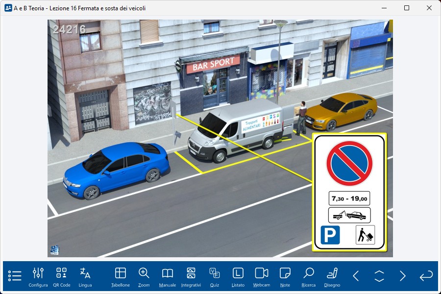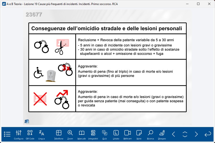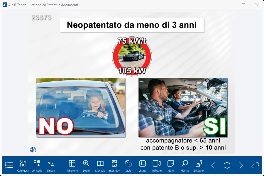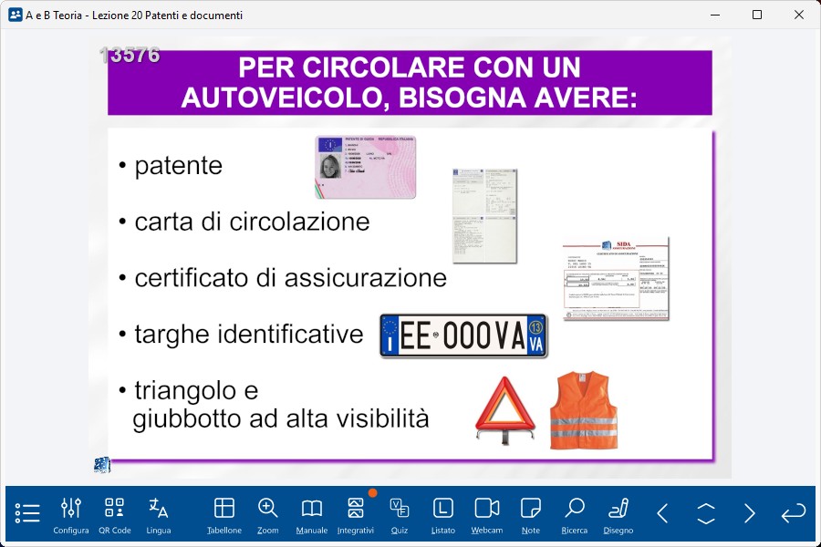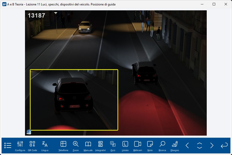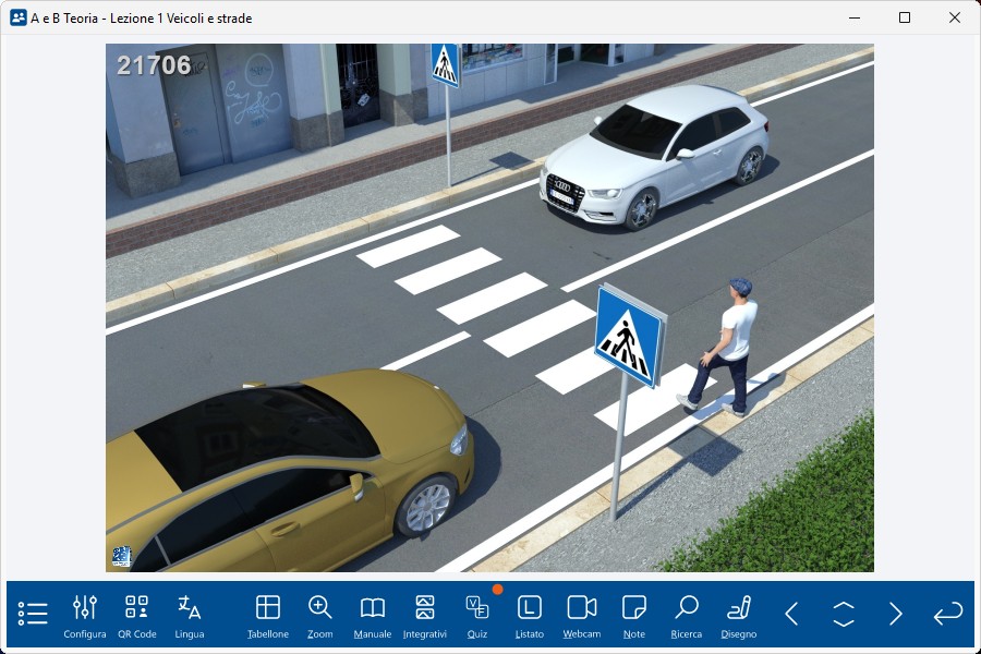 Abbiamo realizzato nuove immagini e migliorato alcune immagini già presenti, grazie anche a segnalazioni di alcuni clienti. Inoltre, abbiamo aggiunto alcune immagini che riguardano situazioni stradali non richieste dai quiz, ma eventualmente utili per un approfondimento.