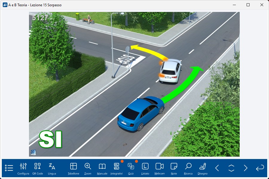 | 5228. Sorpasso a destra consentito: quando il conducente da sorpassare accosta a sinistra | 5226. Pericoli prevalenti del sorpasso: collisioni, in fase di rientro, con il veicolo sorpassato | 5249. Pericoli prevalenti del sorpasso: collisione in fase di avvicinamento |